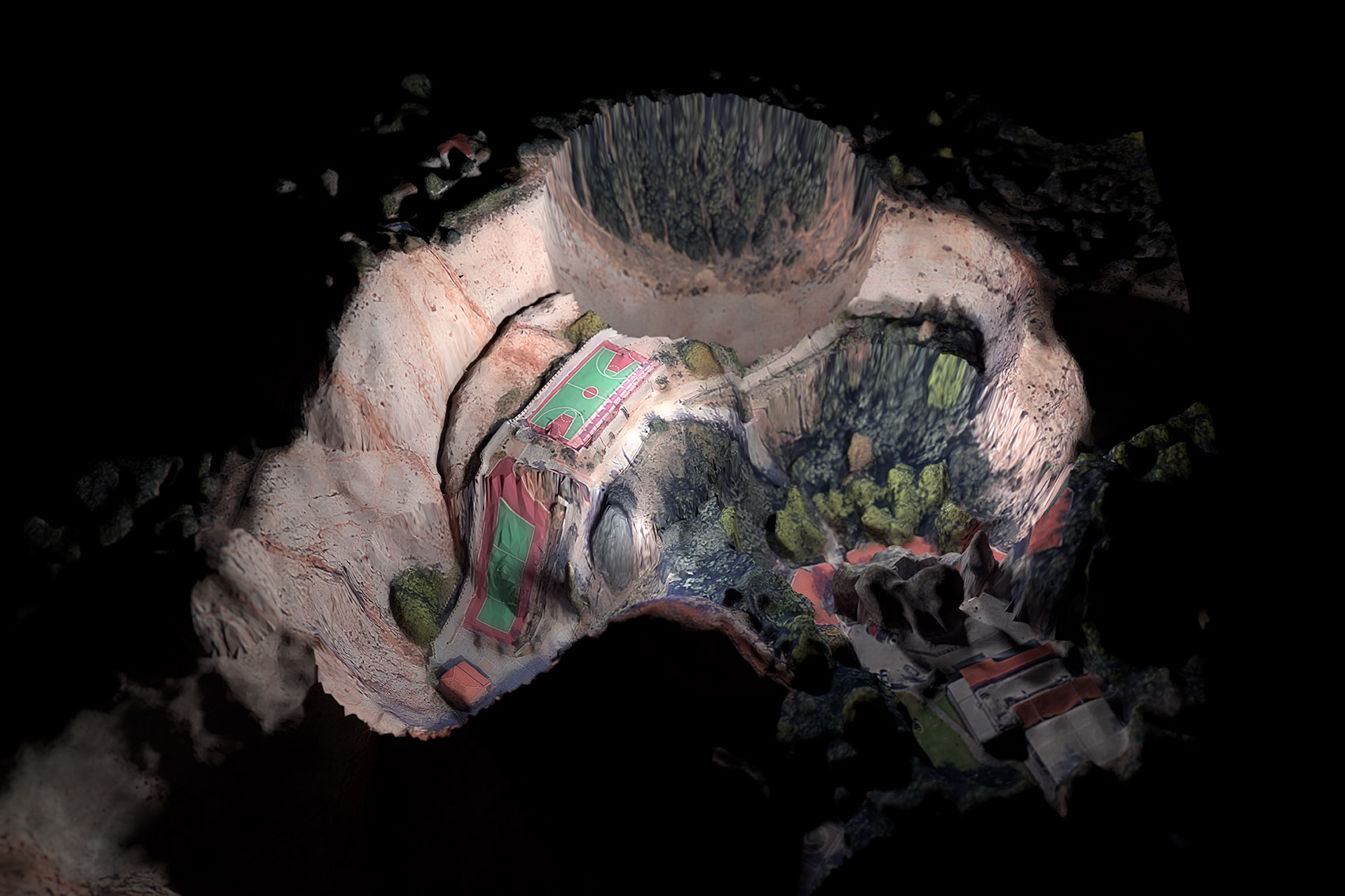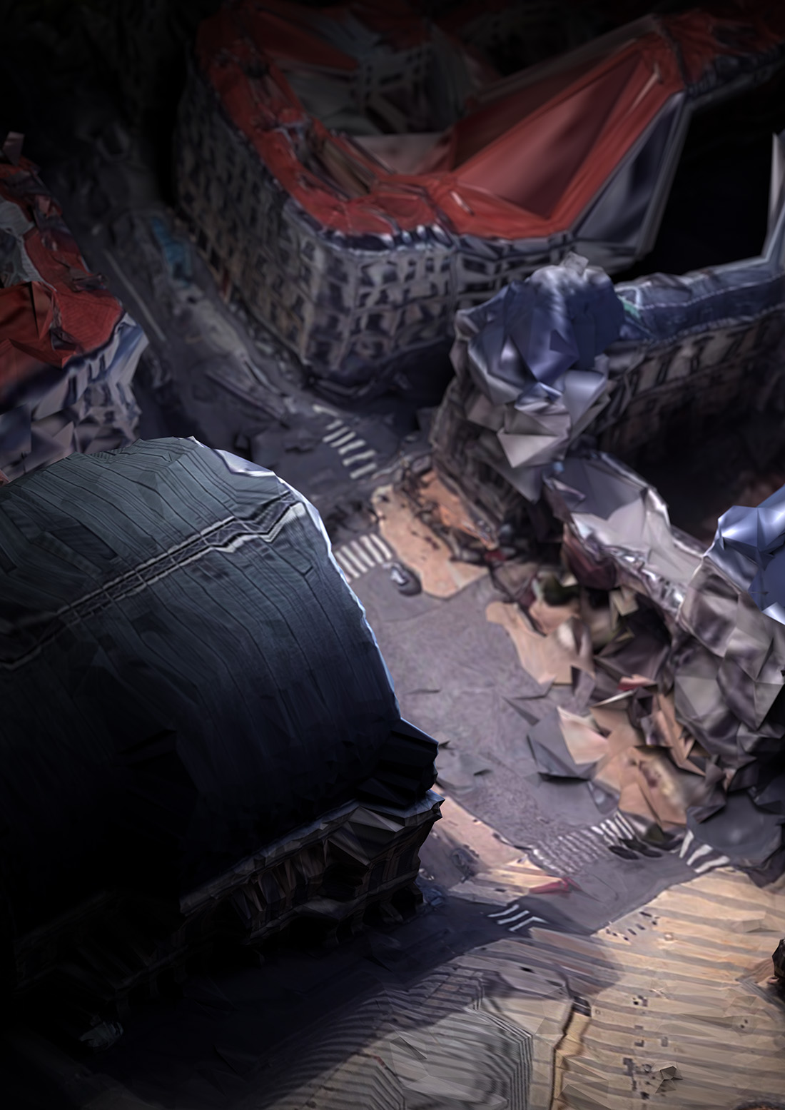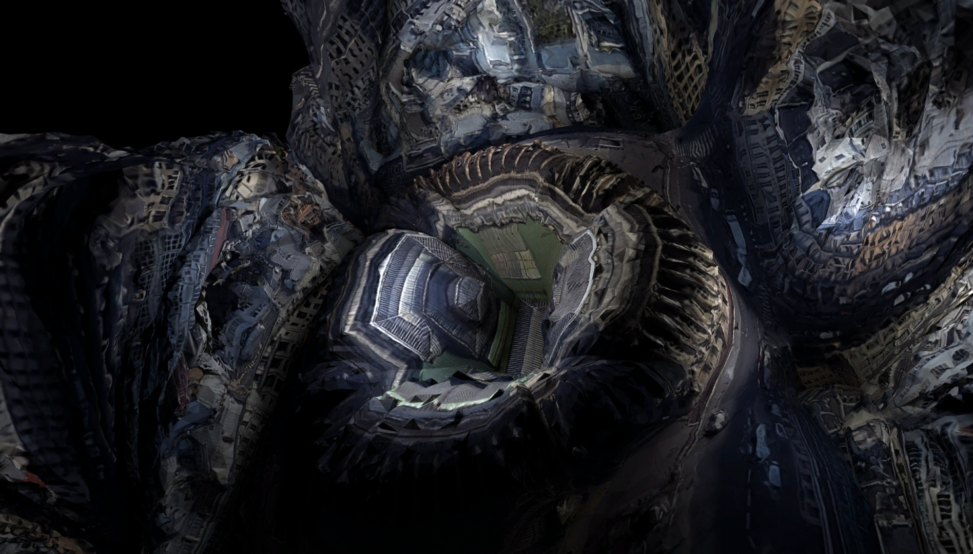 With photogrammetry, we scanned some parts of the Google-generated world. We built 3D landscapes from them and tried to highlight their surreal caracteristics, playing with mysterious lights, impossible distortions and moving points of view. Earthatz is a ride in this corrupted world, celebrating all its fictional, articificial and irrational aspects. As the landscapes are desintegrating and recomposing themselves, their roars are embodied in distorded and mechanical sounds. These heavy synth pads extand the figurative universe, being its intense echo in the spectator’s perceptual space.