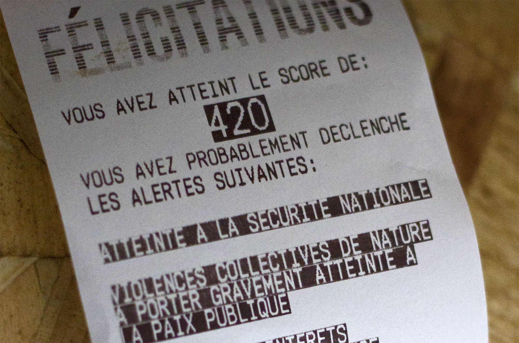 Cette installation interactive cherche à parasiter la capacité de détection de ces technologies sécuritaires et les "faux positifs" qu’elles sont susceptibles de générer. Quels comportements numériques seront considérés comme déviants ? Un traitement statistique du risque est-il vraiment viable ? Ce serious game vise à déresponsabiliser notre navigation internet par le filtre d’un jeu d’arcade connecté à internet. À mesure que le score augmente, les pages web ouvertes par l'action du joueur sont de plus en plus périlleuses...