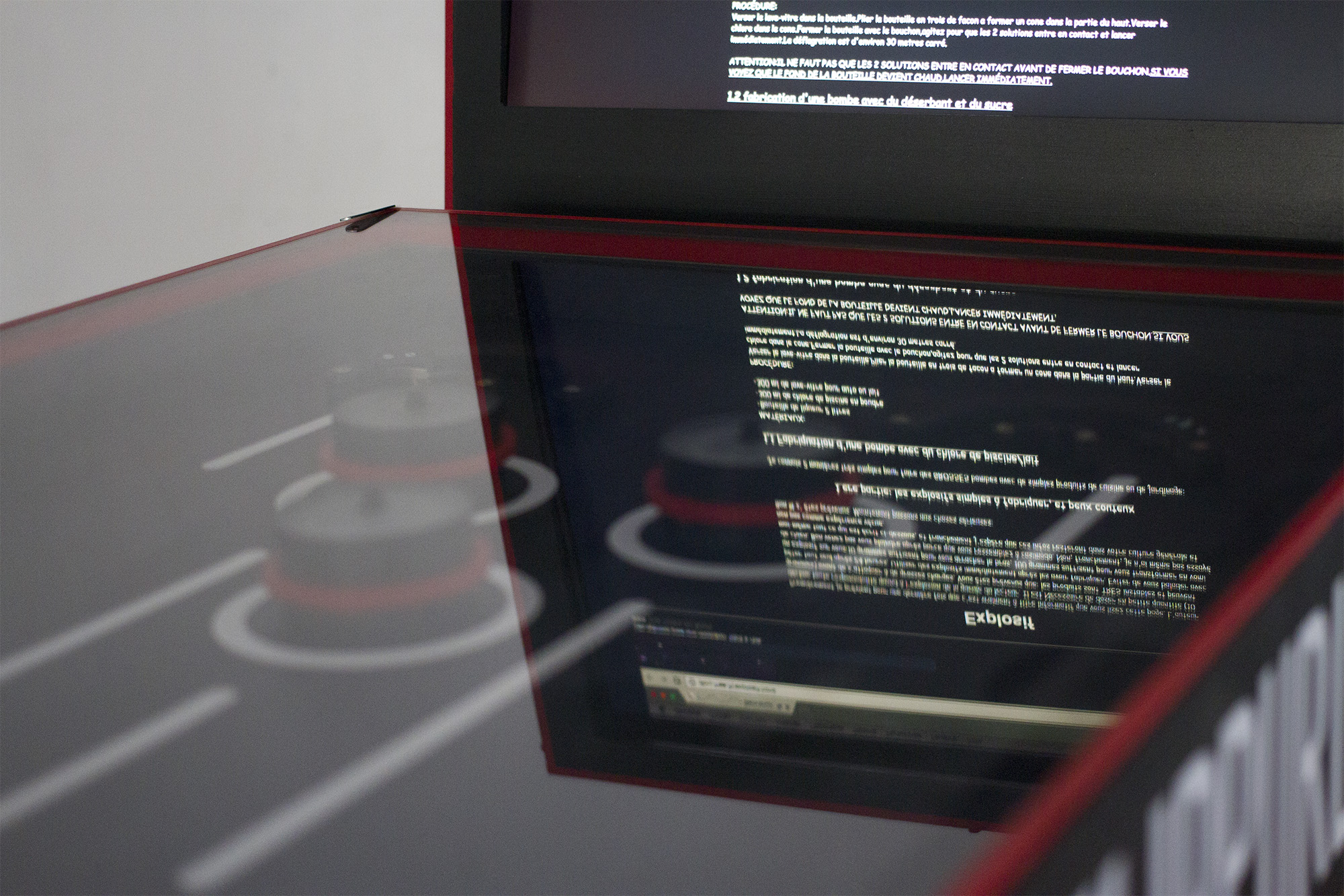 This interactive facility seeks to interfere with the detection capacity of these security technologies and the "false positives" they are likely to generate. Which digital behaviours will be considered as deviant? Is a statistical treatment of risk really viable? This serious game aims to remove the responsibility from our internet navigation through the filter of an arcade game connected to the internet. As the score increases, the web pages opened by the player's action are more and more perilous…
